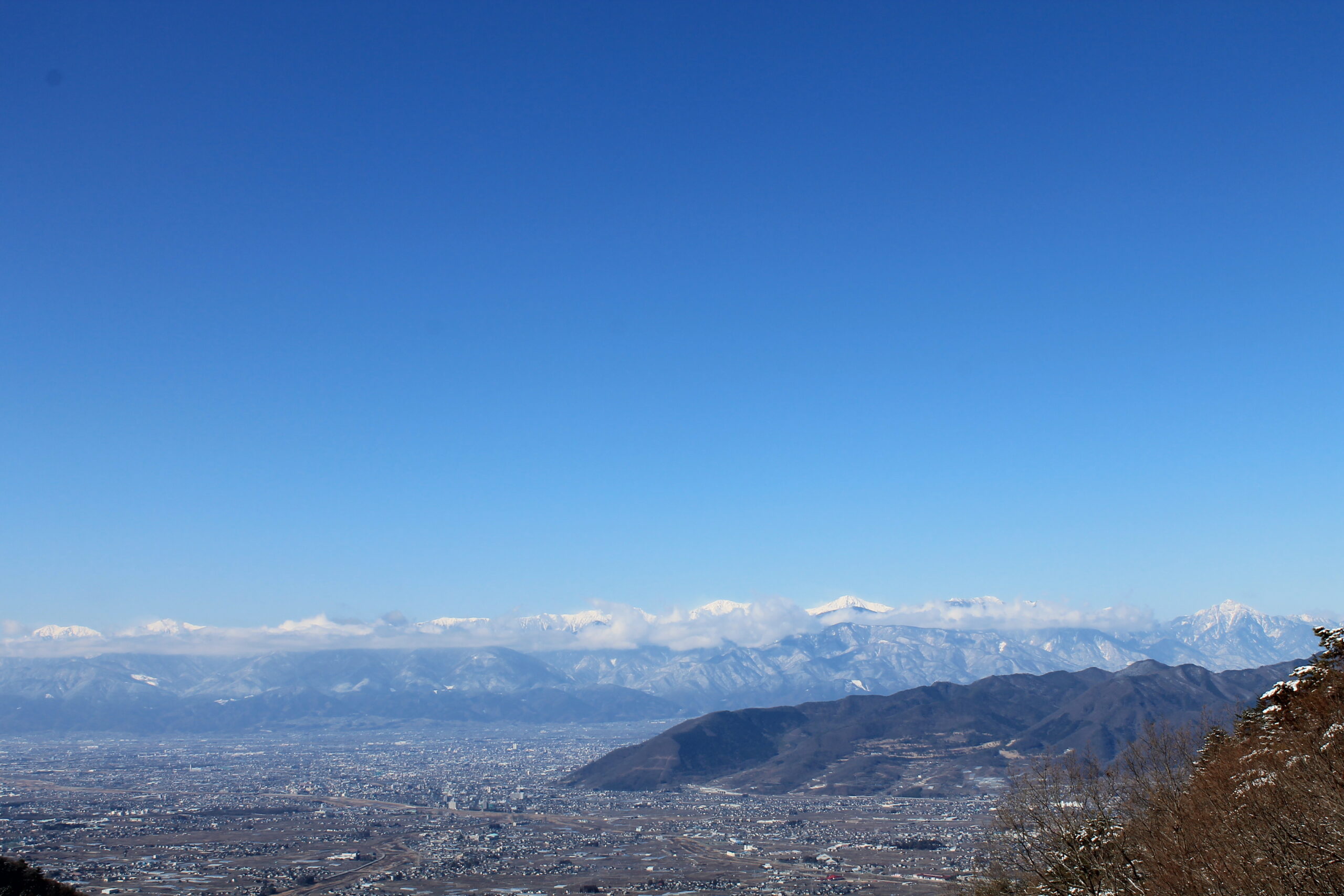 2階展望テラスからの甲府盆地は圧巻です。春夏秋冬それぞれの風景をお楽しみください。ワインを飲みながら、日々の疲れを癒して下さい。