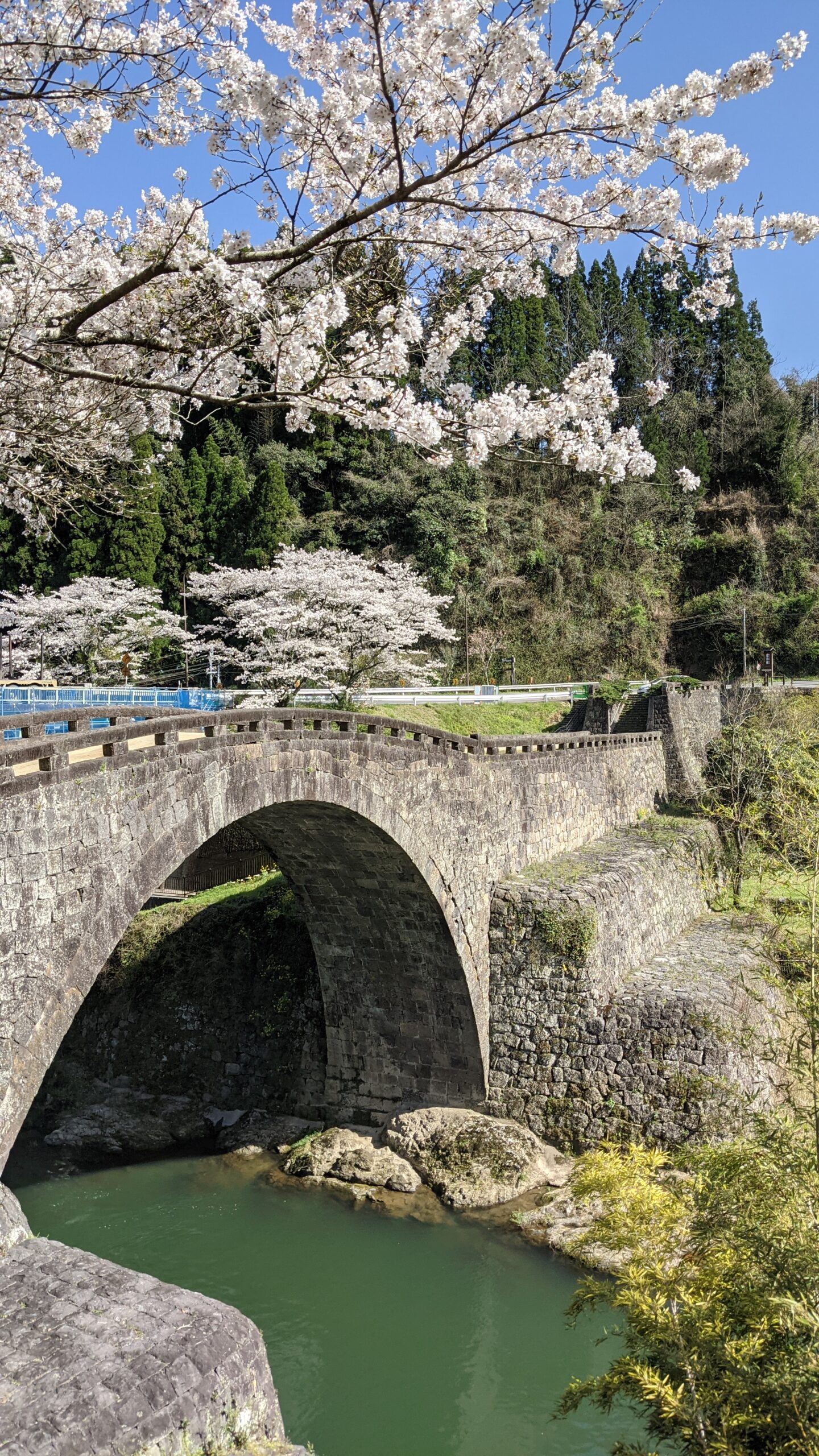 1847年に架橋された霊台橋は国指定重要文化財に指定されている。見事な石組みで、全長約90m、高さ16m、幅は5.5mあり、単一アーチの橋としては日本3位の大きさを誇る。CMなどにもよく使われるという霊台橋の上で、記念撮影はいかが?