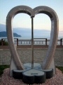 厚田公園から約30キロ北へ進むと、愛冠岬(あいかっぷみさき)をハート形のアーチ越しに望むことができる石のモニュメント「ラバーズ・オーシャン」が。台座の四つ葉のクローバーには、それぞれ「Love(愛)」「Luck(幸運)」「Hope(希望)」「Faith(信頼)」の文字が英語で刻まれているので、アナタの求めるものの場所に立って写真をパチリ。