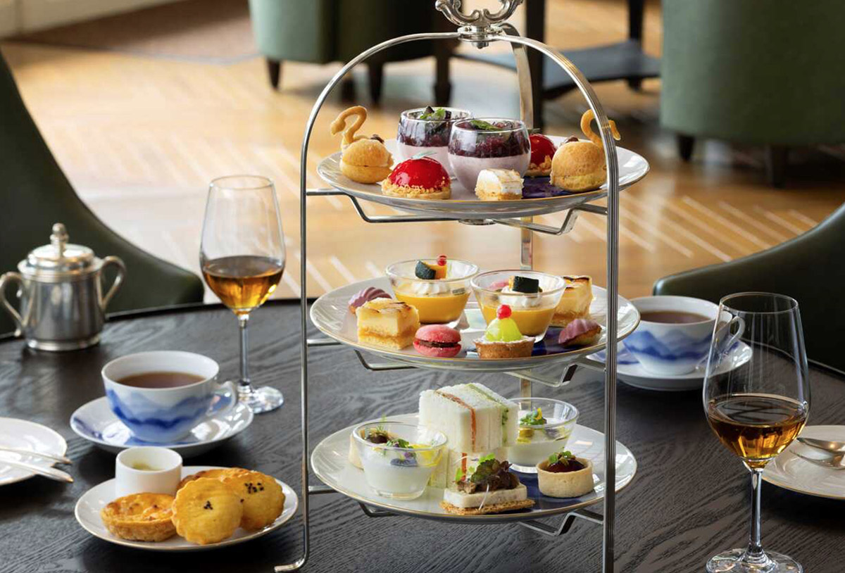 旅行ドライブの途中なら、それぞれの趣向を凝らせたアフタヌーンティーを楽しんで。「メインダイニングルーム・ザ・フジヤ」ではクレープシュゼットフランベを組み込んだ特別なアフタヌーンティー。「旧御用邸 菊華荘」では三段の抽(ひ)き出し型の木箱には旬の素材を使用した和菓子や、ホテル特製の和洋折衷スイーツを、箱根寄木細工の器には繊細な味わいの和のセイボリーを。「ラウンジ」ではアフタヌーンティースタンドのクラシックなスイーツや贅沢素材のセイボリーとのマリアージュを。